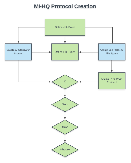 Each job role’s protocol will follow the general format of ID → Store → Track → Dispose: